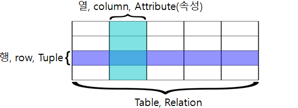 앞으로는 표가 아니라 테이블, 행을 row 열을 column이라고 부르겠다.