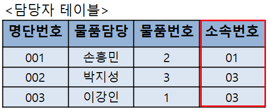 <담당자 테이블>에 소속번호(인덱스)를 추가하여